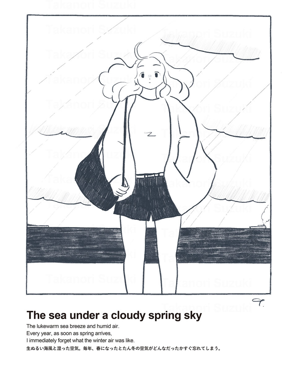 The sea under a cloudy spring sky